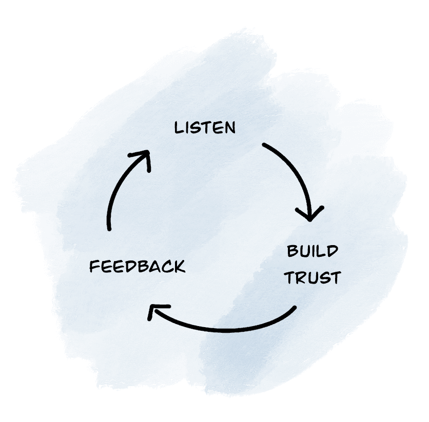 I saw this dynamic clearly when a designer on my team asked for a promotion, but there were a few areas they needed to develop first. I was nervous about having what I thought would be a tough conversation. They were probably expecting good news, but instead I was going to share the areas they needed to work on. When we actually talked, it went really well—they agreed that those were exactly the areas they felt they needed to work on. Because we had that foundation of trust, what could have been a disappointing conversation became a collaborative growth plan.